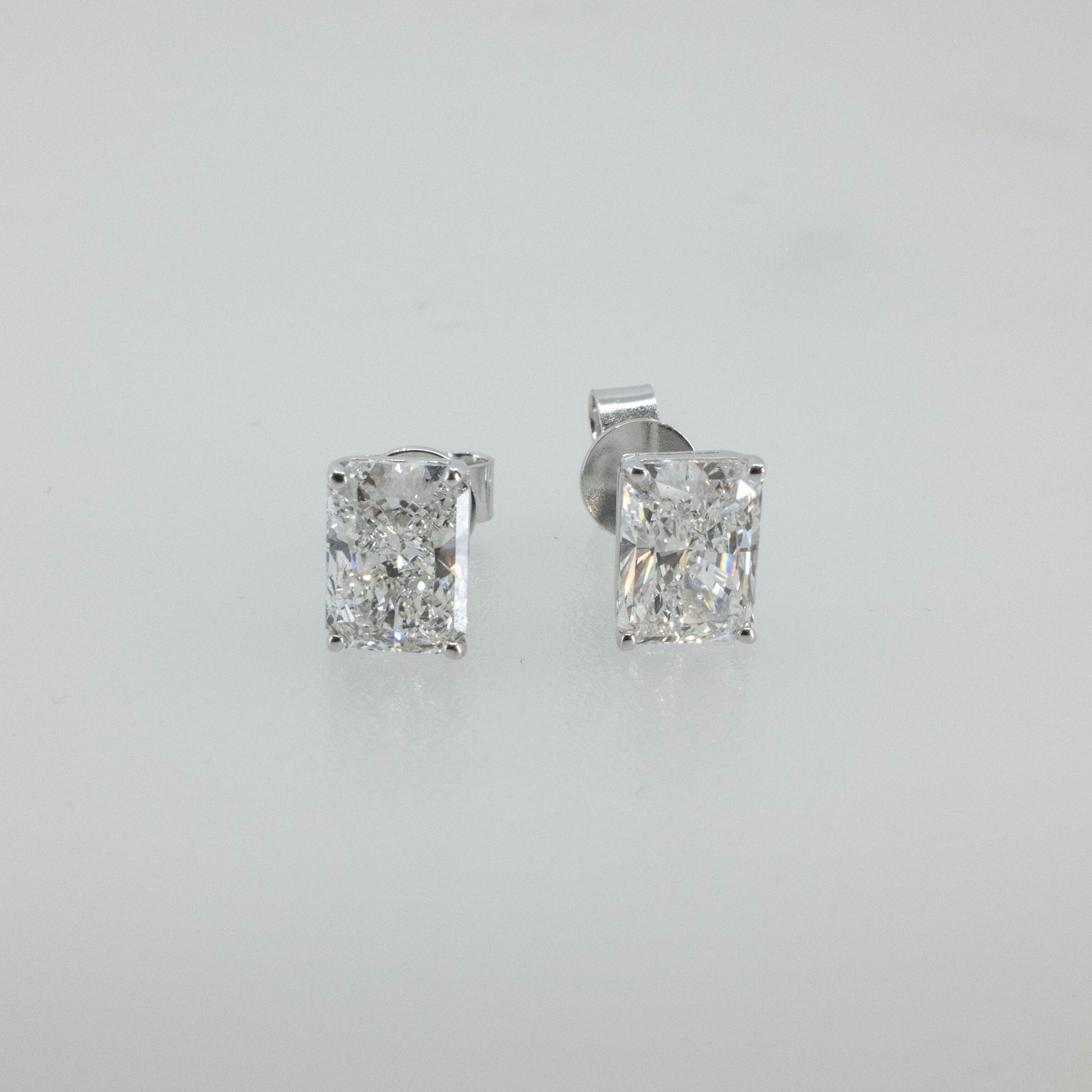 Striking and elegant, these radiant-cut lab-grown diamond stud earrings feature a combined 4.01 carats of brilliant sparkle. Each diamond is expertly set in a four-prong 14K white gold setting, showcasing the radiant cut’s distinctive facets and crisp geometry for maximum fire and brilliance.
