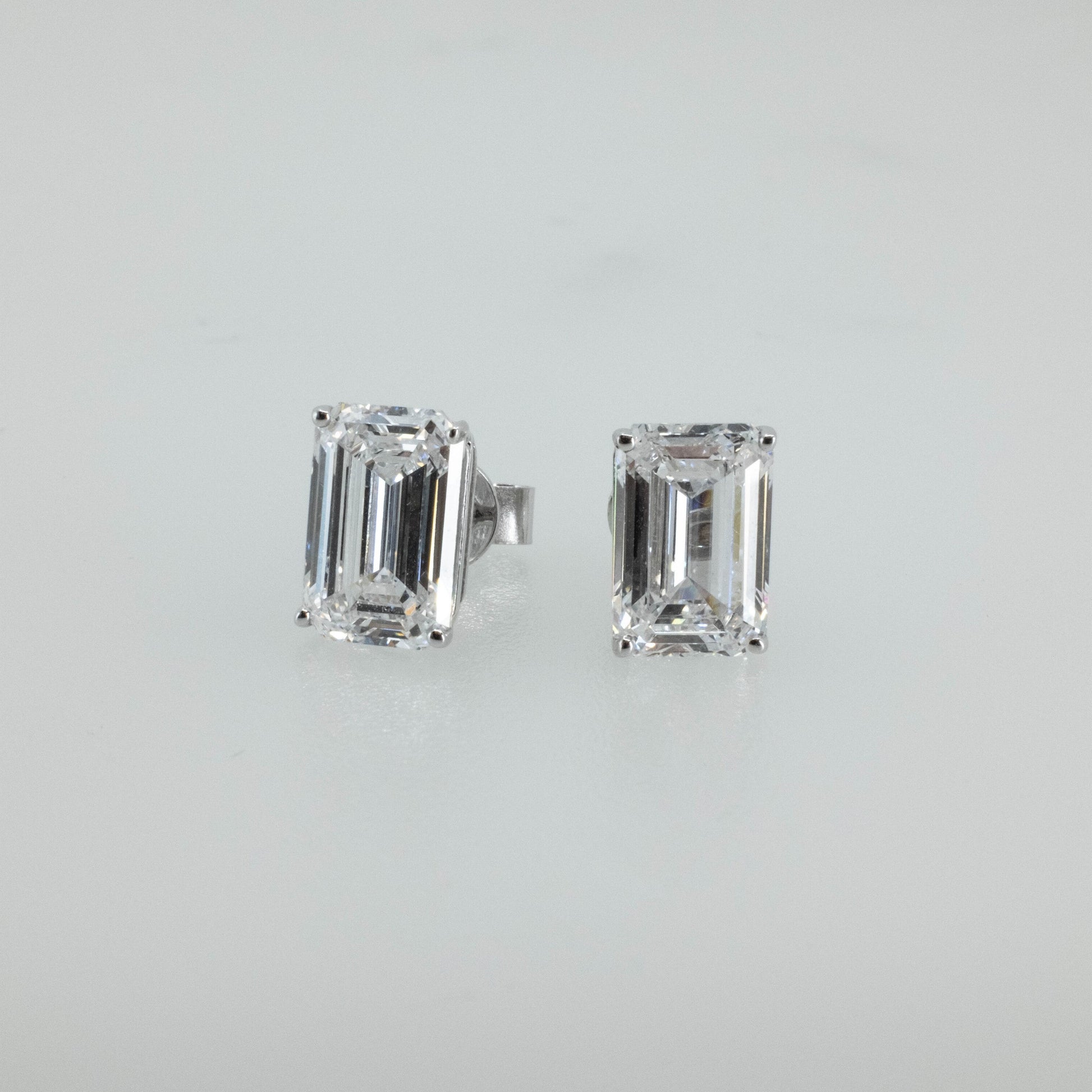 Bold and sophisticated, these emerald-cut lab-grown diamond stud earrings feature a combined 6.14 carats of exceptional brilliance. Each diamond is securely set in a four-prong 14K white gold setting, emphasizing the clean lines and elegance of the emerald cut while maximizing light reflection.