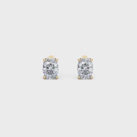 Elegant and timeless, these elongated cushion cut lab diamond studs bring a graceful twist to the classic stud earring. Each stone is securely held in a four-prong setting, offering both strength and a refined design that enhances the elongated sparkle of the elongated cushion cut.