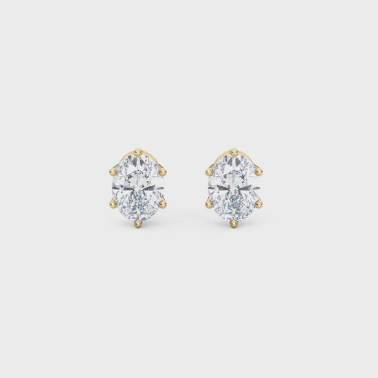 Elegant and timeless, these oval cut lab diamond studs bring a graceful twist to the classic stud earring. Each stone is securely held in a six-prong setting, offering both strength and a refined design that enhances the elongated sparkle of the oval cut.