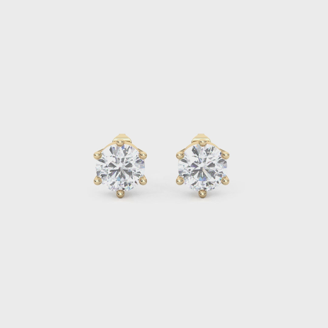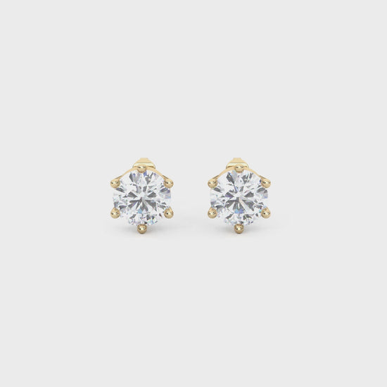 Elevate your everyday style with the timeless beauty of these round cut lab diamond studs. Each diamond is securely held in a six-prong setting, offering both durability and a delicate, floral-inspired look that enhances the brilliance of the stone.