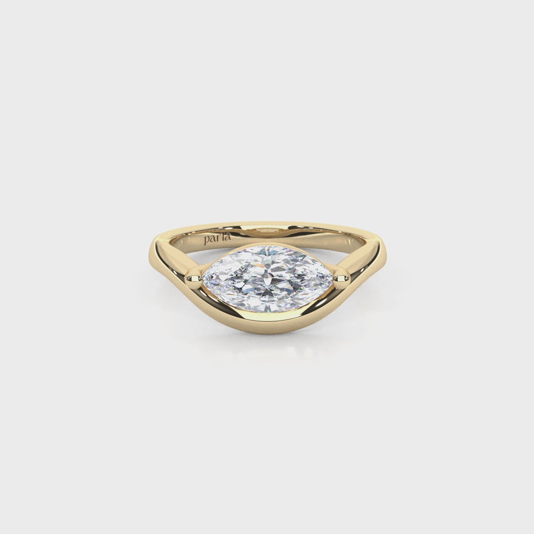 Elevate your style with this striking 1.00 Carat Marquise Lab Diamond Pinky Ring, set in a bold East-West orientation for a modern twist on a timeless shape. Crafted in solid 14K gold, the sleek band curves gracefully around the stone, giving it a smooth, contemporary feel while ensuring lasting comfort.