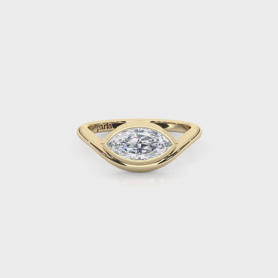 Sleek and sophisticated, this 1.00 carat marquise cut lab-grown diamond ring is crafted in a modern bezel setting for a secure yet stylish look. The elongated diamond shape enhances finger length, while the smooth 14K band adds a refined, contemporary edge. Perfect as a statement pinky ring or a unique everyday piece, this design blends bold elegance with lasting comfort.