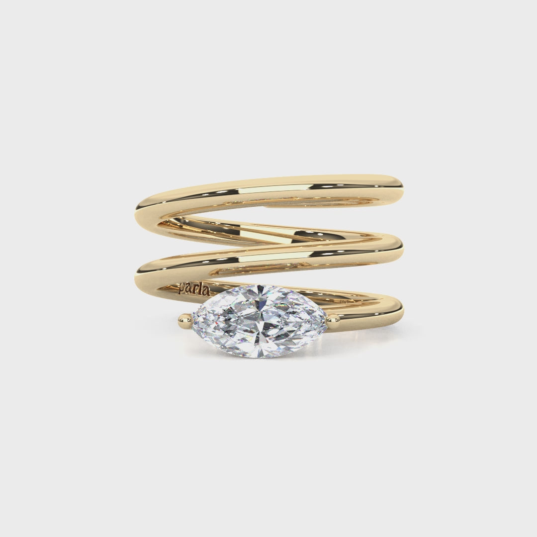 Elegant 1.00 Carat Marquise Cut Lab Diamond Longer Spiral Design Pinky Ring