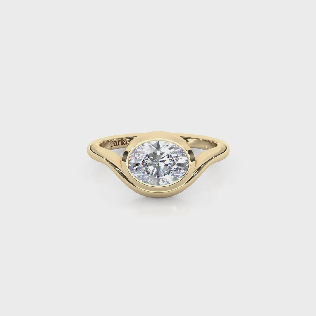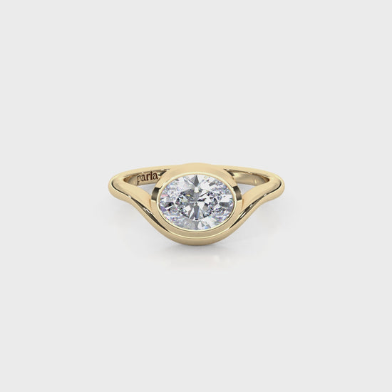 Sleek and sophisticated, this 1.00 carat oval cut lab-grown diamond ring is crafted in a modern bezel setting for a secure yet stylish look. The elongated diamond shape enhances finger length, while the smooth 14K band adds a refined, contemporary edge. Perfect as a statement pinky ring or a unique everyday piece, this design blends bold elegance with lasting comfort.