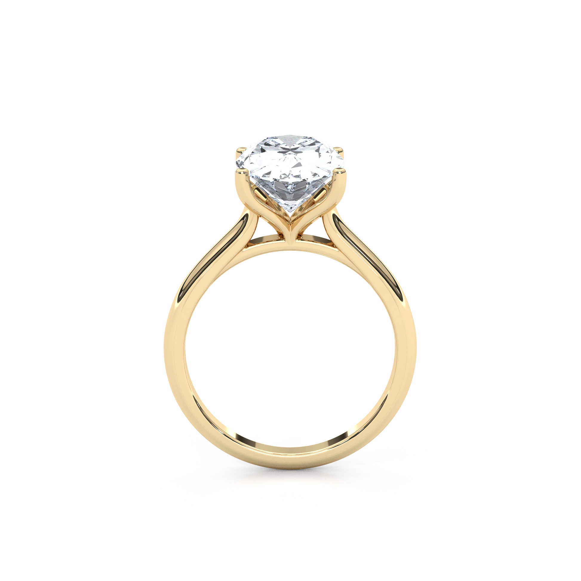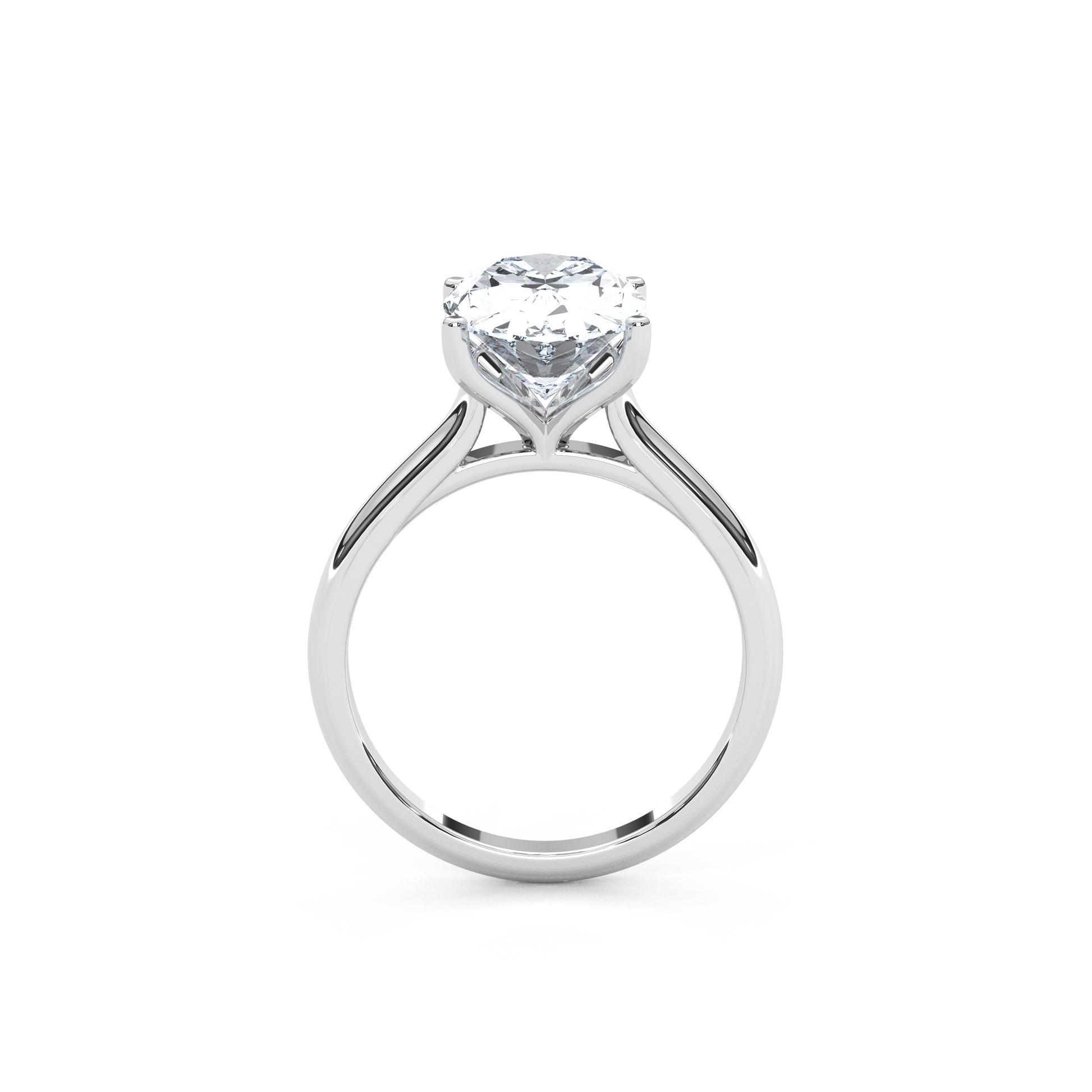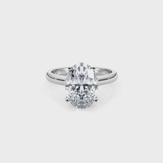 A timeless design with a graceful silhouette, this ring highlights a 1.00 carat (or more if you choose) oval cut lab-grown diamond in a classic cathedral setting. The cathedral arches lift the diamond elegantly above the band, allowing light to enter from every angle for exceptional brilliance.