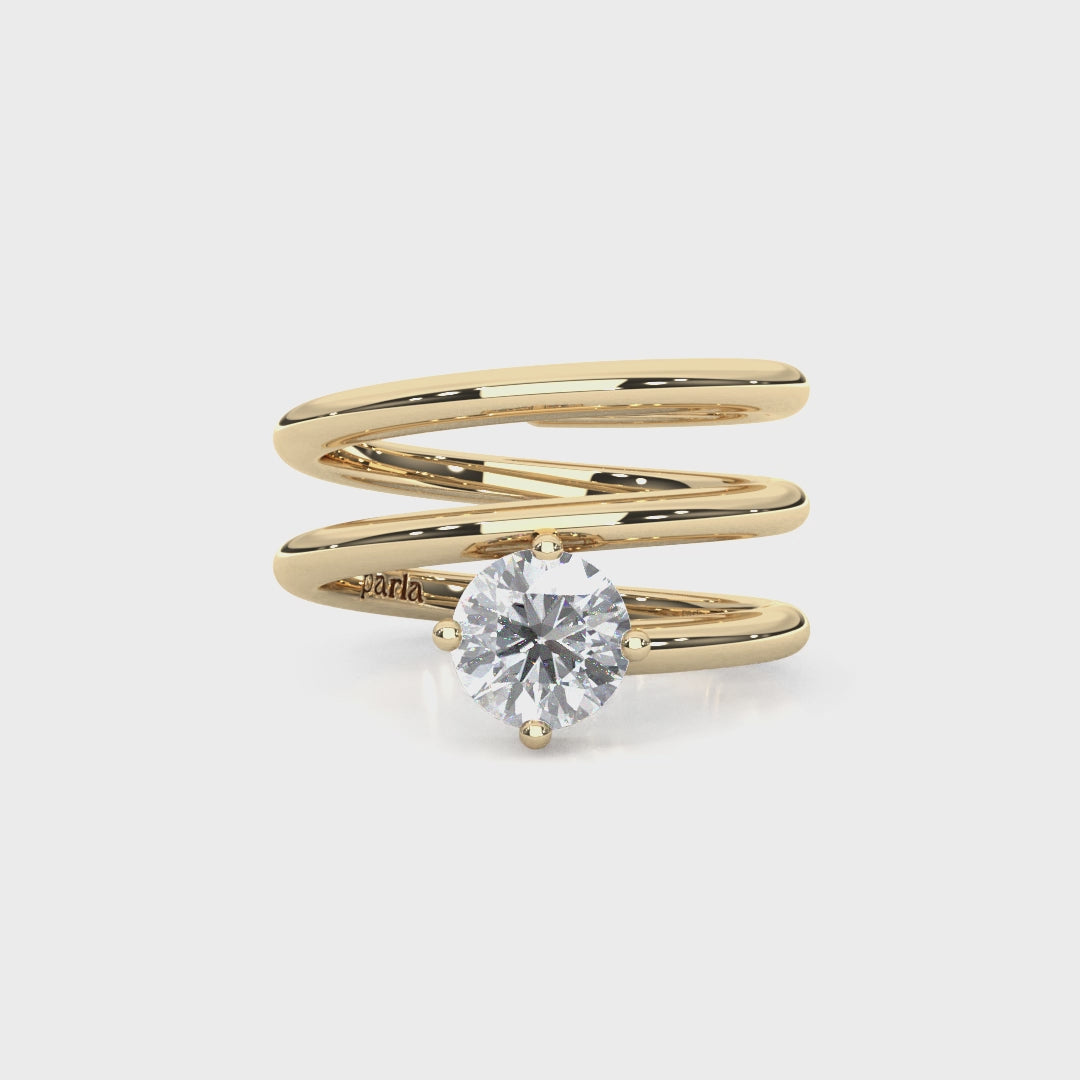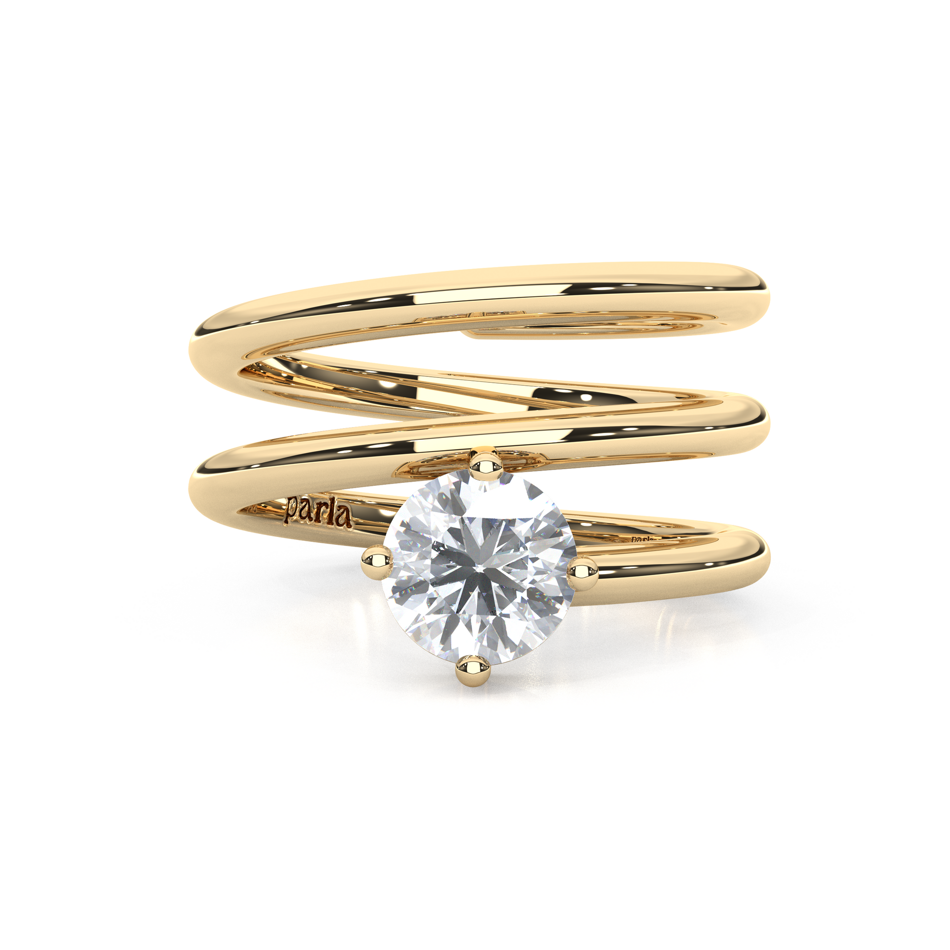 Classic brilliance meets modern artistry in this Spiral Pinky Ring, featuring a timeless 1.00 carat round-cut lab diamond set across a flowing spiral gold band. The round cut — celebrated for its unmatched sparkle — is elevated by the bold, sculptural spiral design that wraps around the finger with sleek sophistication. Perfect as a statement piece or everyday luxury, this ring brings together enduring elegance and contemporary style.