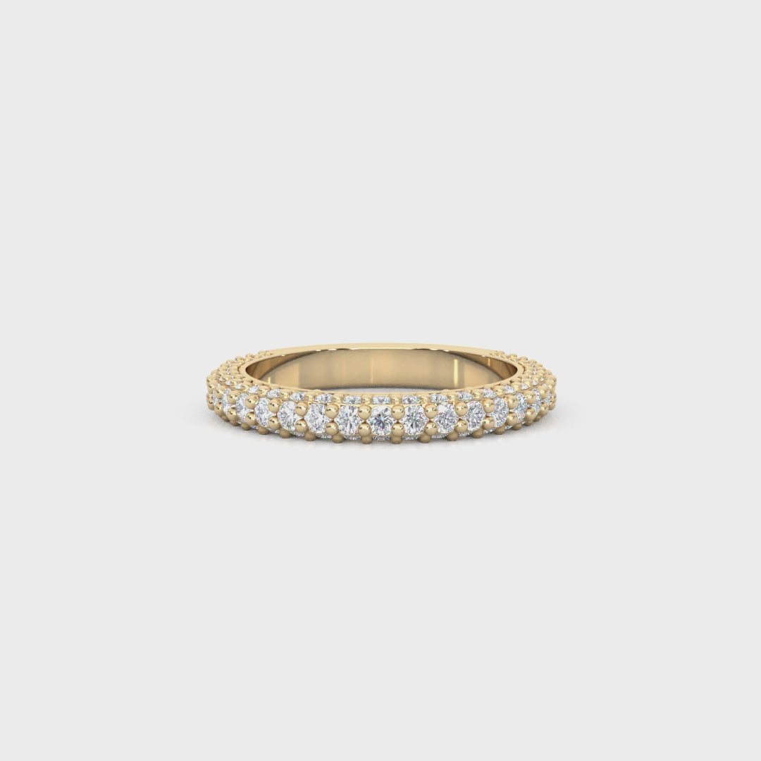 Complete your bridal set with this dazzling lab-diamond band, designed to perfectly complement your engagement ring. Featuring 1.00 carat total weight of round brilliant lab-grown diamonds, this band showcases a double-row pavé design that wraps seamlessly around the ring for maximum sparkle and brilliance.