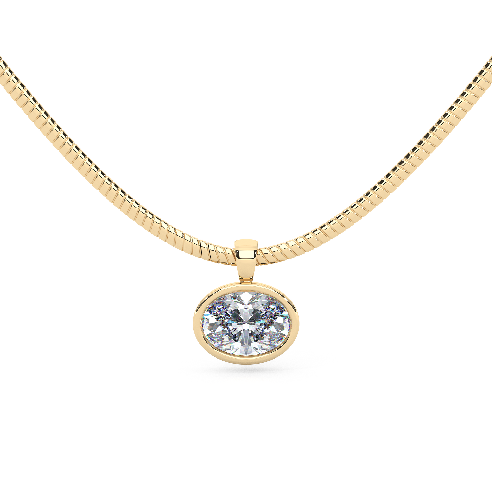 The Parla Omega | Oval Lab-Diamond Bezel Pendant Necklace in 14K Gold