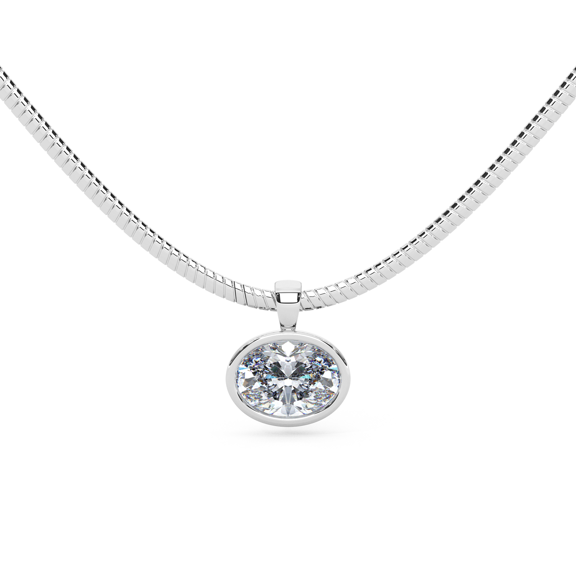 Redefine modern elegance with The Parla Omega, a structural masterpiece that pairs the sleek, continuous lines of a 2mm thick 14K gold Omega chain with the geometric sophistication of an Oval Cut diamond.